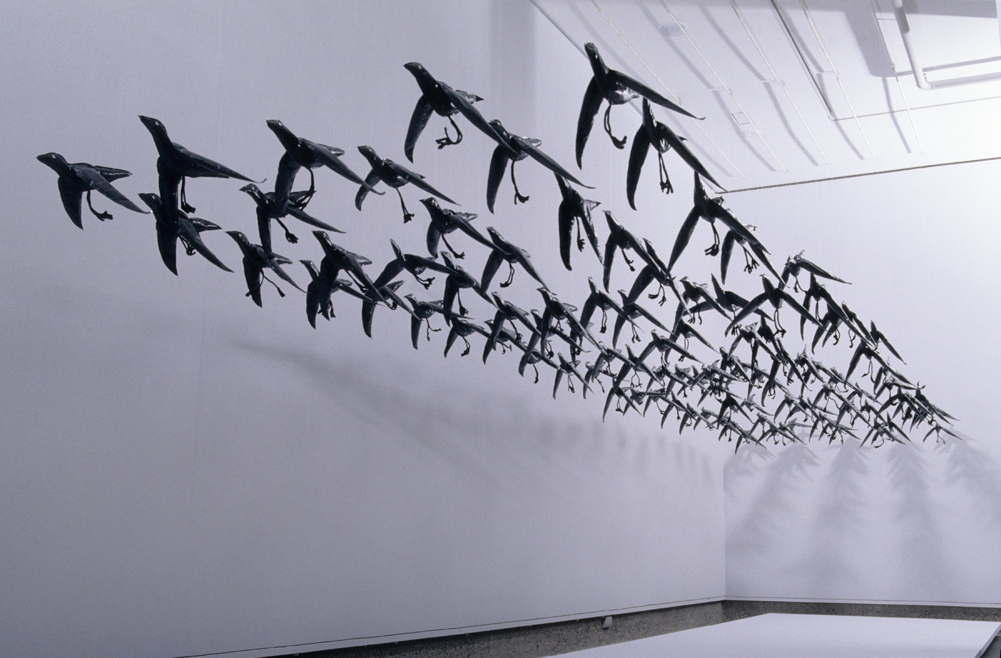 Maria Kozic, 'The Birds', 1981. Plastic, wool, pipe cleaners, nylon thread, sequins, and wood, (variable height) × 371.0 × 384.5 cm (installed). Installation view National Gallery of Victoria, 1982.