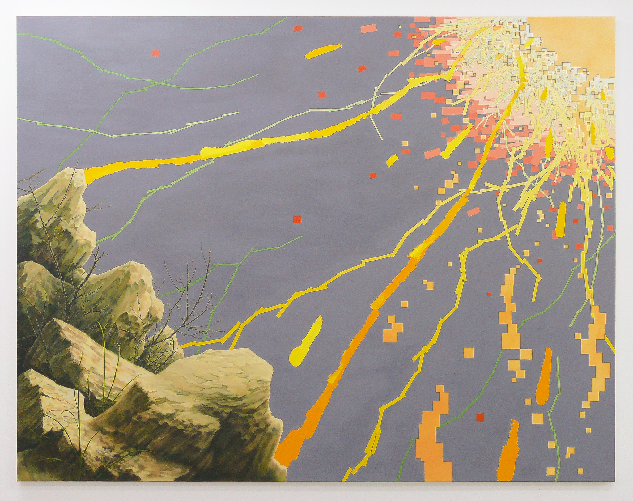 Working across painting, drawing and animation, Viv Miller moves between abstraction and realism to create highly personalised and imaginative visions of the natural world. The pieces she creates are carefully composed and painstakingly rendered, and draw from a broad array of influences, including European Romanticism, Japanese graphic art, digital imagery and geometric abstraction. Her work explores the construction of conflicting pictorial spaces and textures, ranging from the realistic to the flat, and the painterly to the plastic.