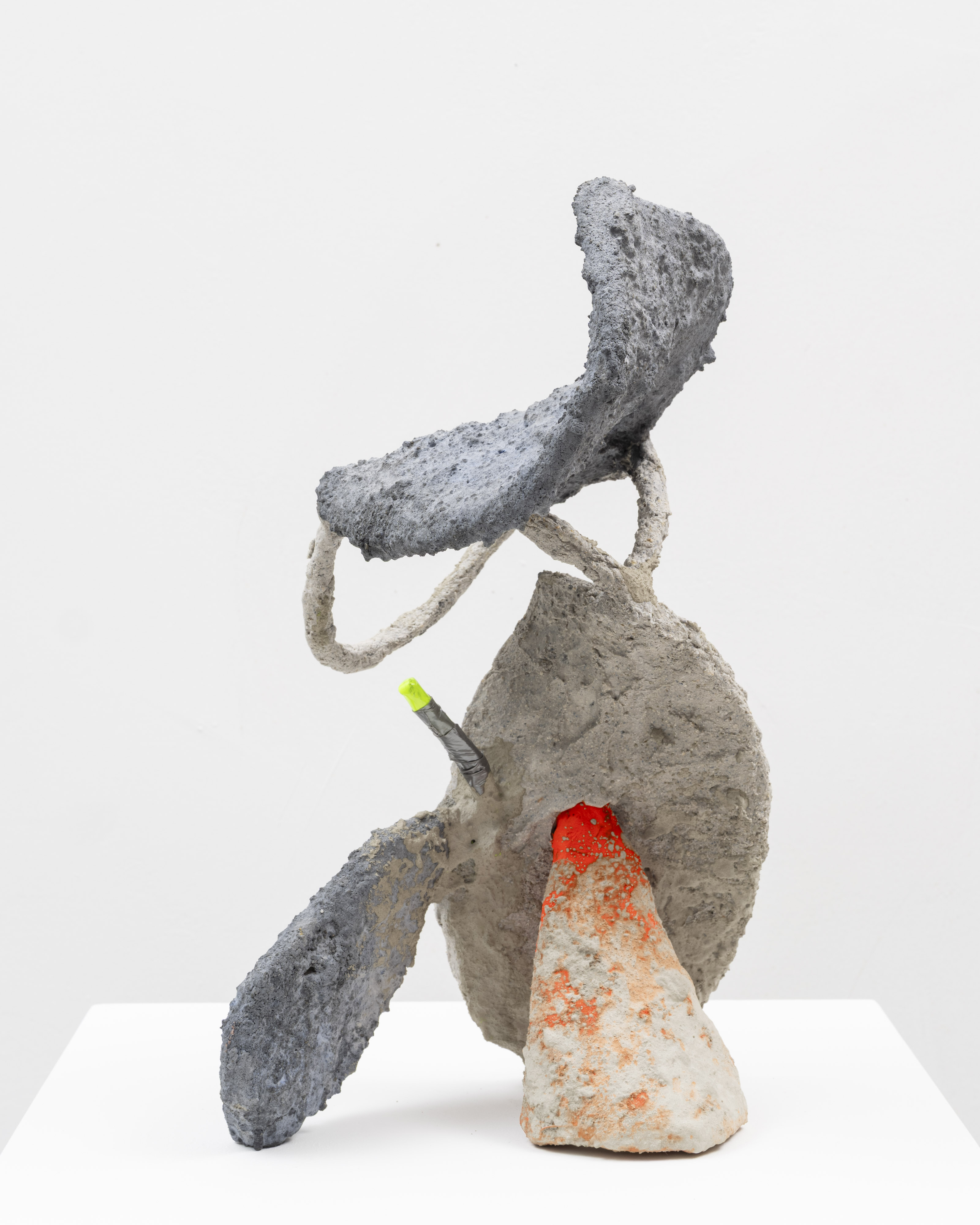 Nordin’s sculptures operate as small systems of negotiation in which propping, counterweight and restraint become performative strategies. Surfaces harden mid-drip, armatures are revealed as the finished gesture, and supports behave like actors within a constructed scene. The result is a body of work that celebrates the provisional mechanics of cities—how they are patched, propped and held together—inviting viewers to witness the scaffolding of both making and meaning. Hot Rod Dilemma foregrounds the tactile, the engineered and the precarious, offering a composed exploration of the urban environment, through its accumulated traces and physical impressions.