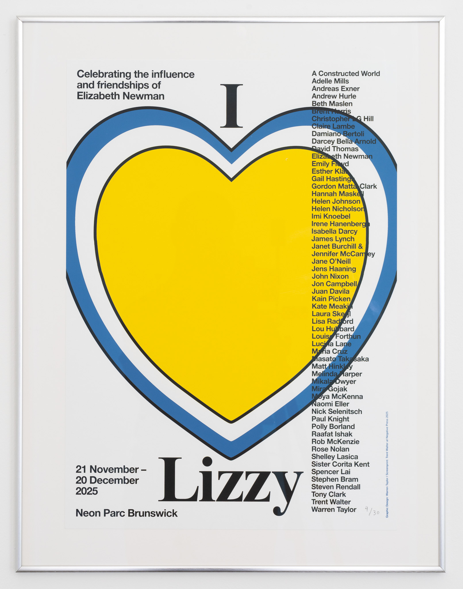 Neon Parc proudly presents I ♥ Lizzy, a group exhibition celebrating the influence and friendships of Elizabeth Newman, opening Friday 21st November from 6–8pm at Neon Parc Brunswick.