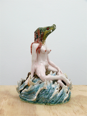 Janet Beckhouse, Crocodile Woman, 2011, Porcelaineus stoneware, lustre glaze, 18 x 13 x 13 cm